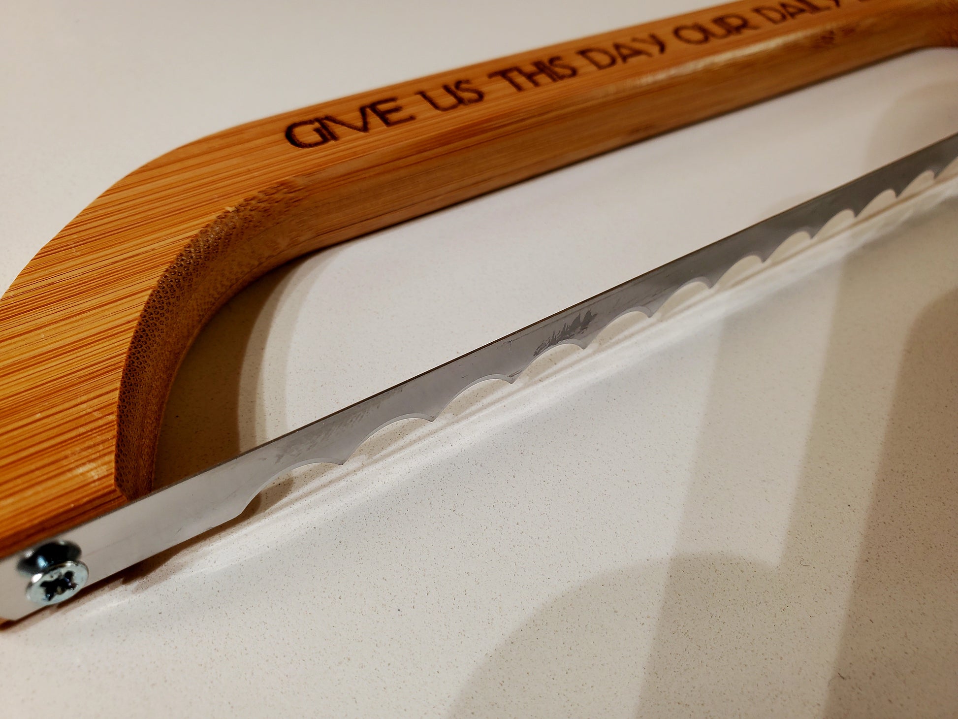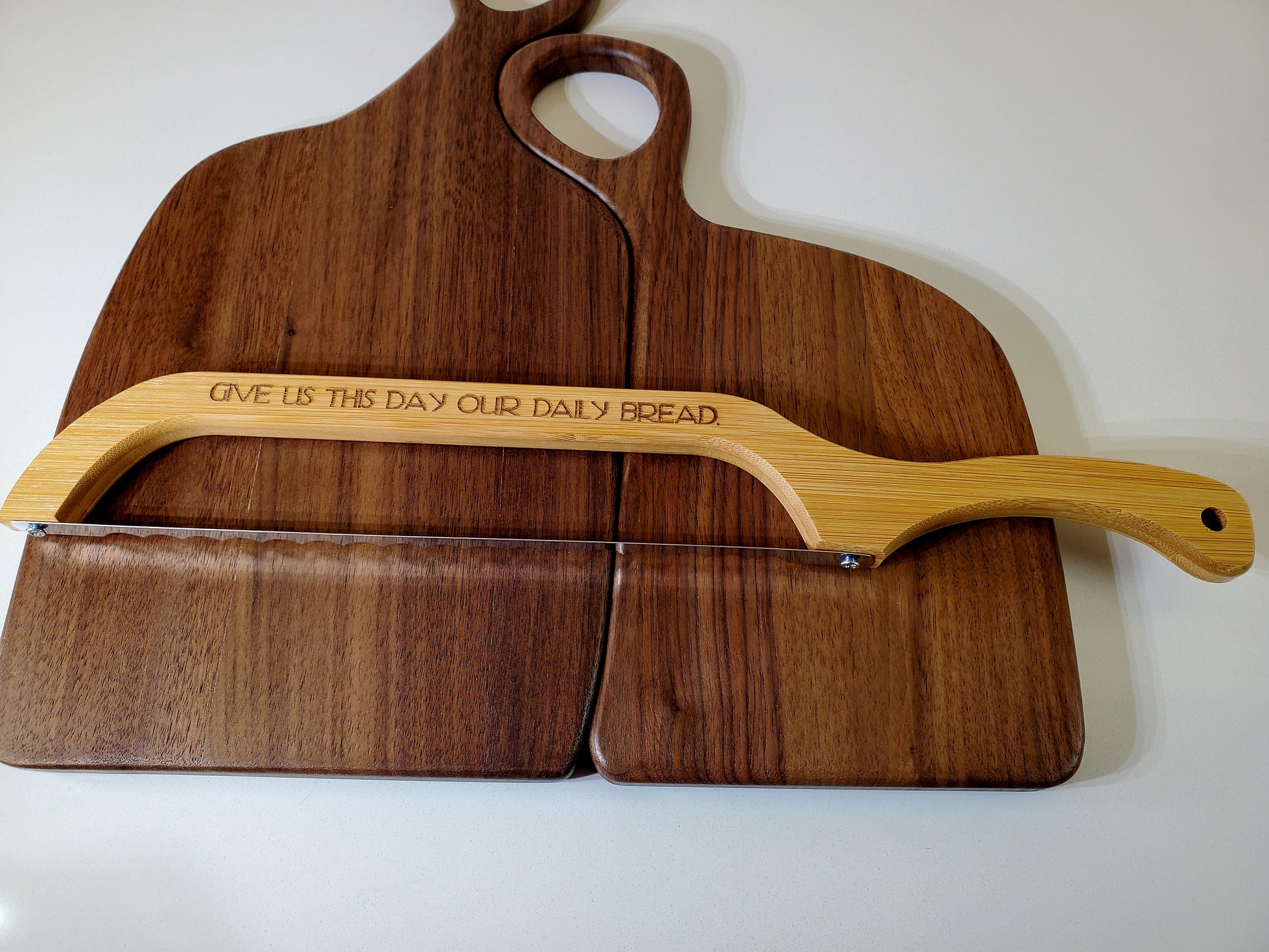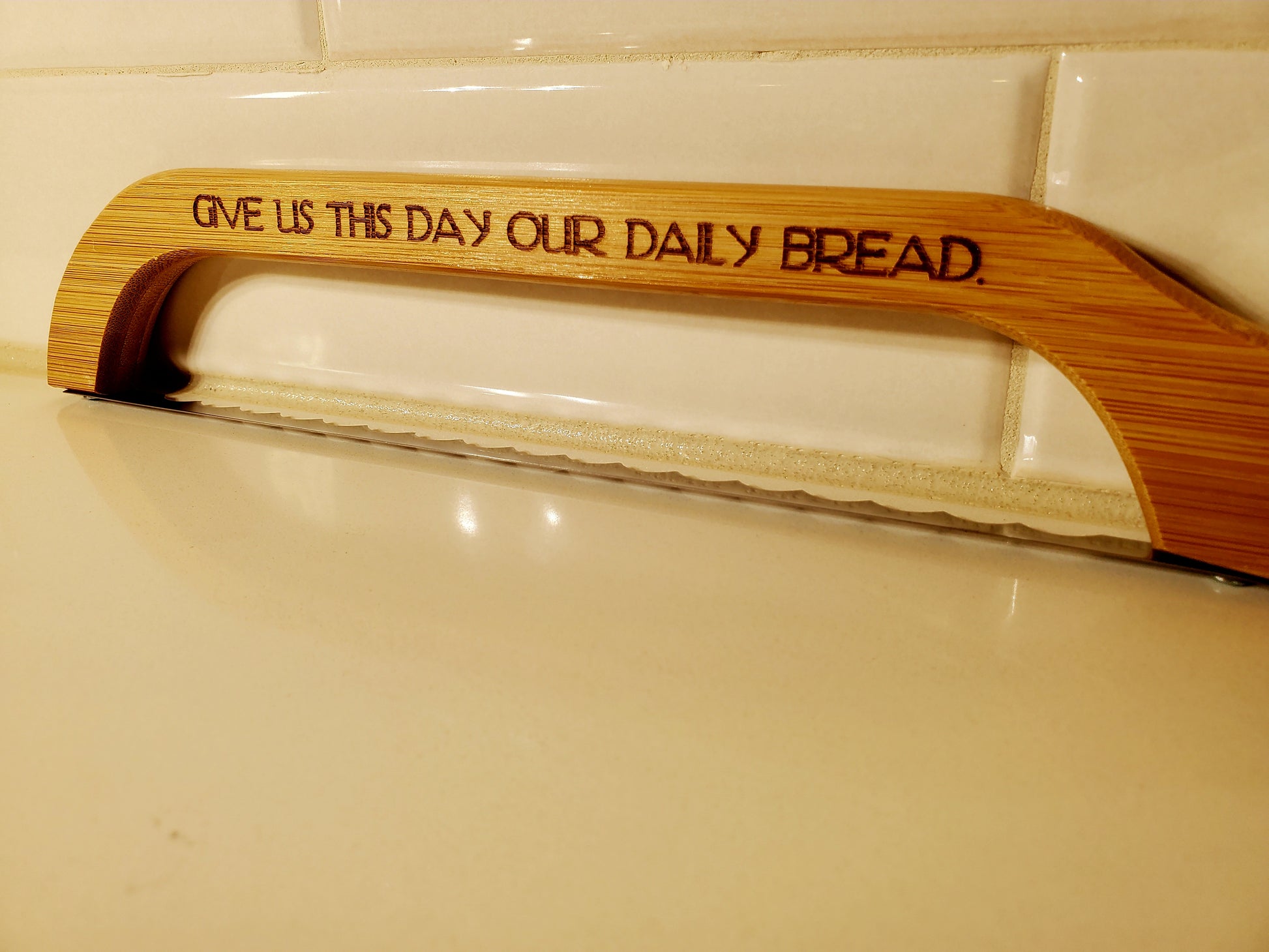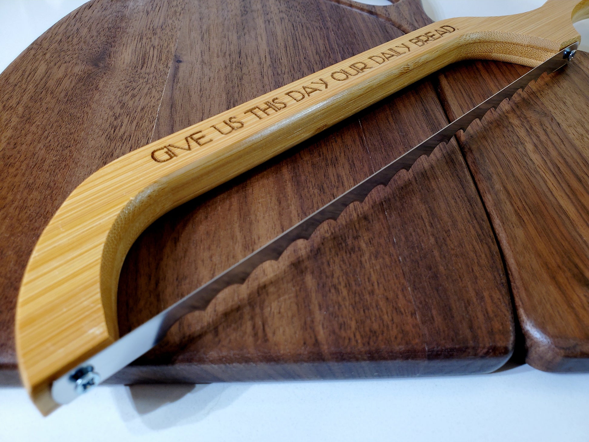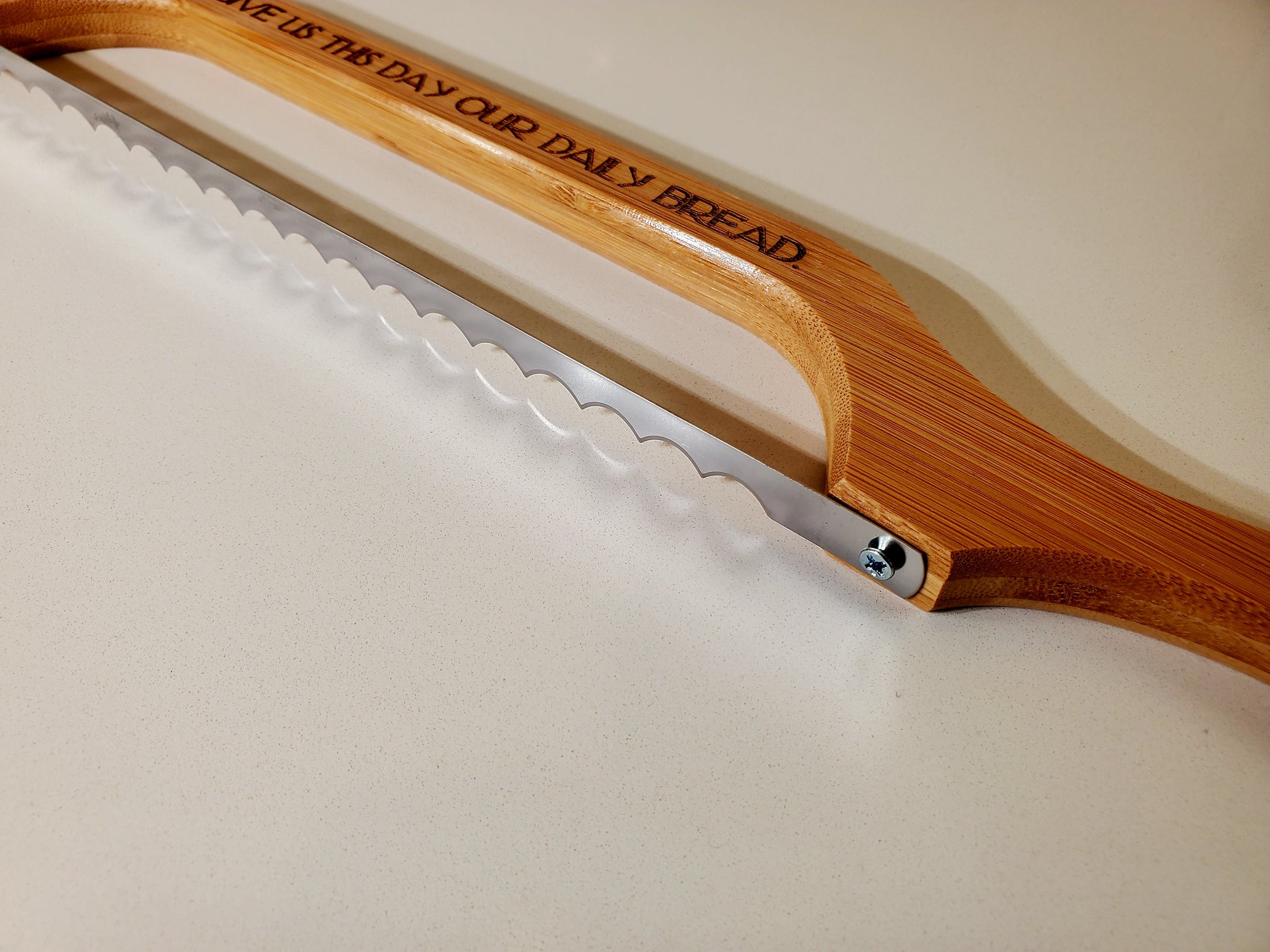 Slice through your baking challenges with precision and style using our Wooden Bread Bow Knife, inspired by the timeless words, "Give us this day our daily bread." (Matthew 6:11) Here's why it's a must-have for every kitchen: