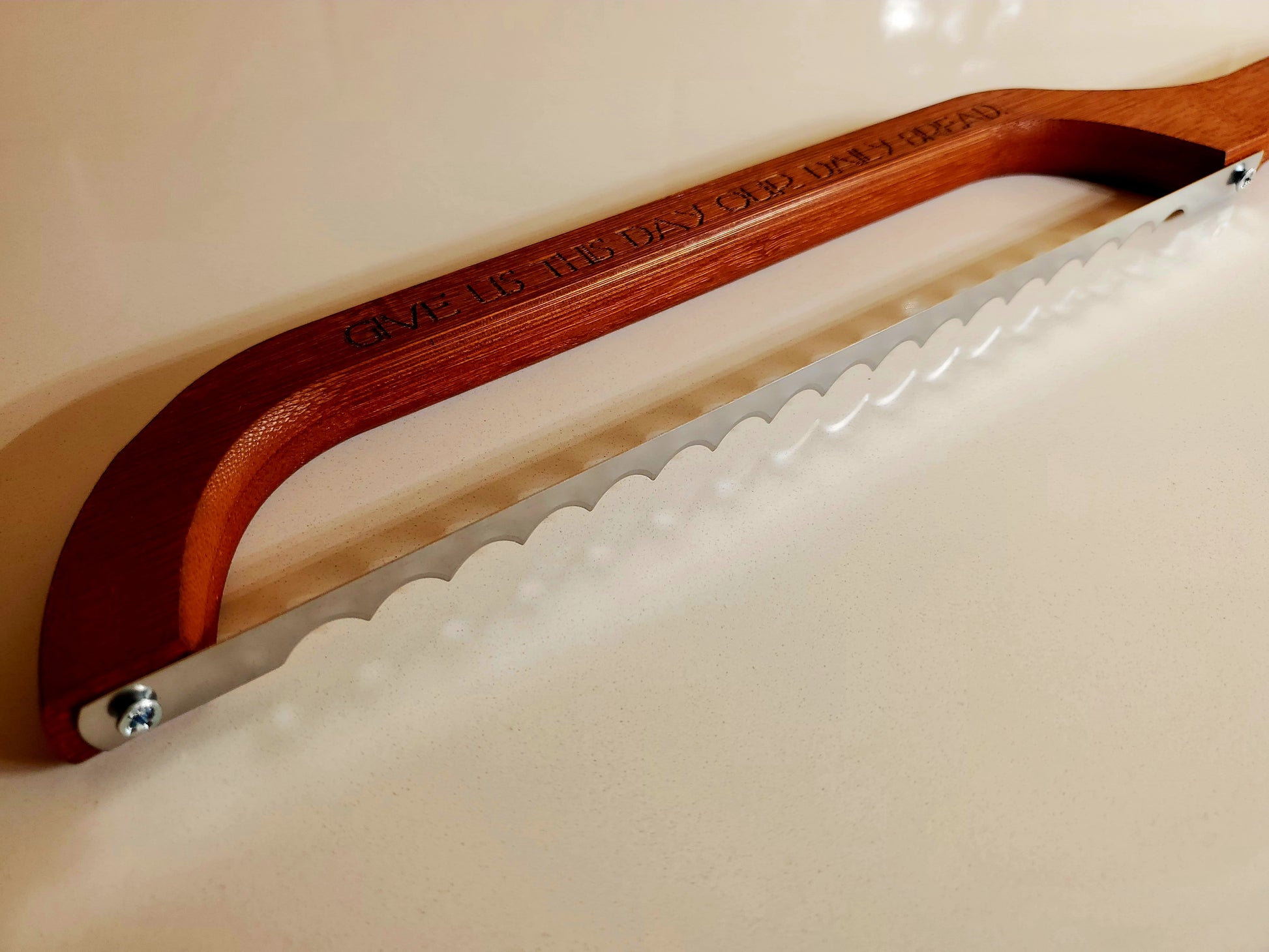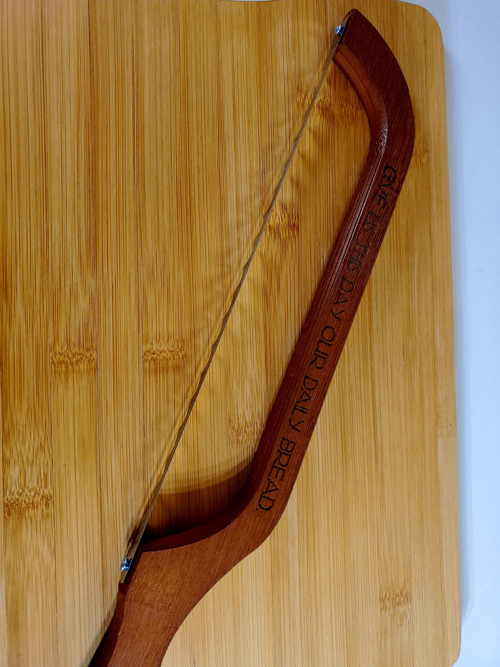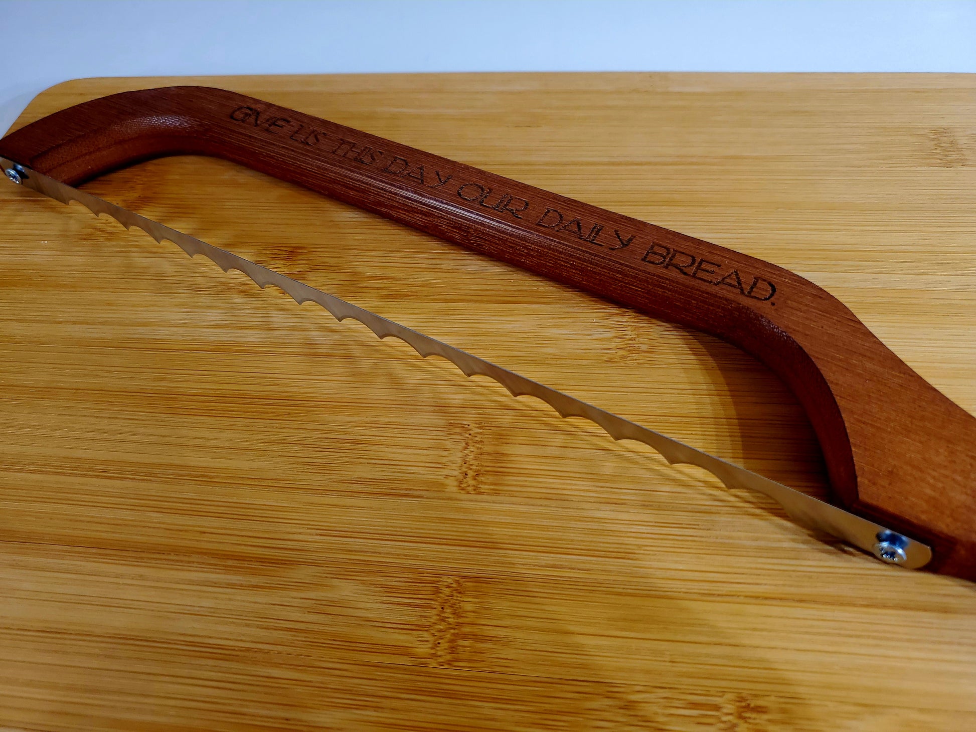 Slice through your baking challenges with precision and style using our Wooden Bread Bow Knife, inspired by the timeless words, "Give us this day our daily bread." (Matthew 6:11) Here's why it's a must-have for every kitchen: