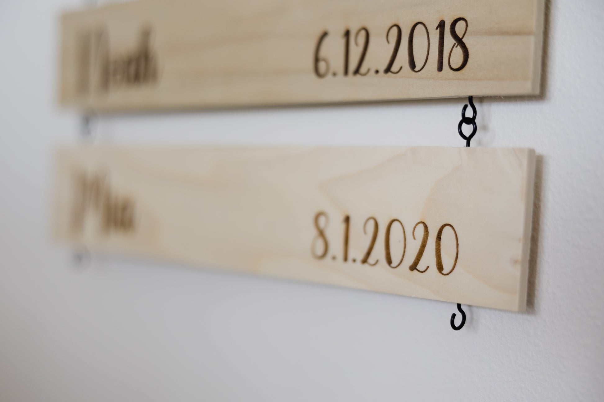 Important Details: Please provide the names and birthdays on this page. Each sign is unique, featuring natural wood grain, knots, and non-structural cracks for added character. Colors may appear slightly different in person due to screen variations.