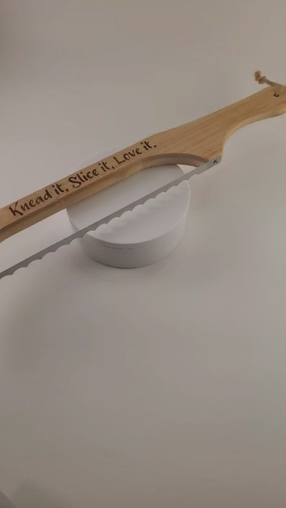 Transform your baking routine with precision and style using our Wooden Bread Knife, beautifully engraved with the playful words, "Knead it, Slice it, Love it." Here's why it's an essential addition to every kitchen: