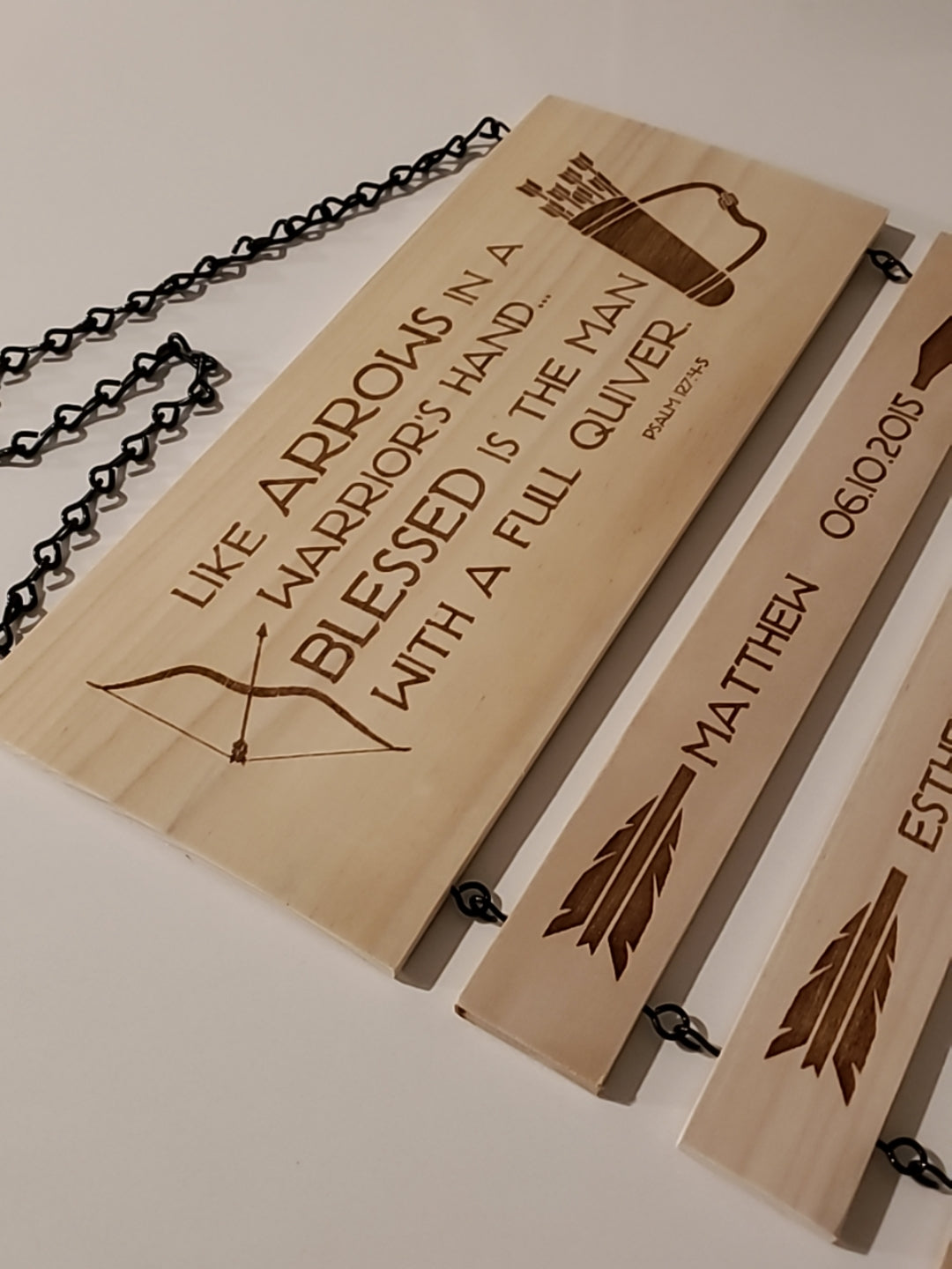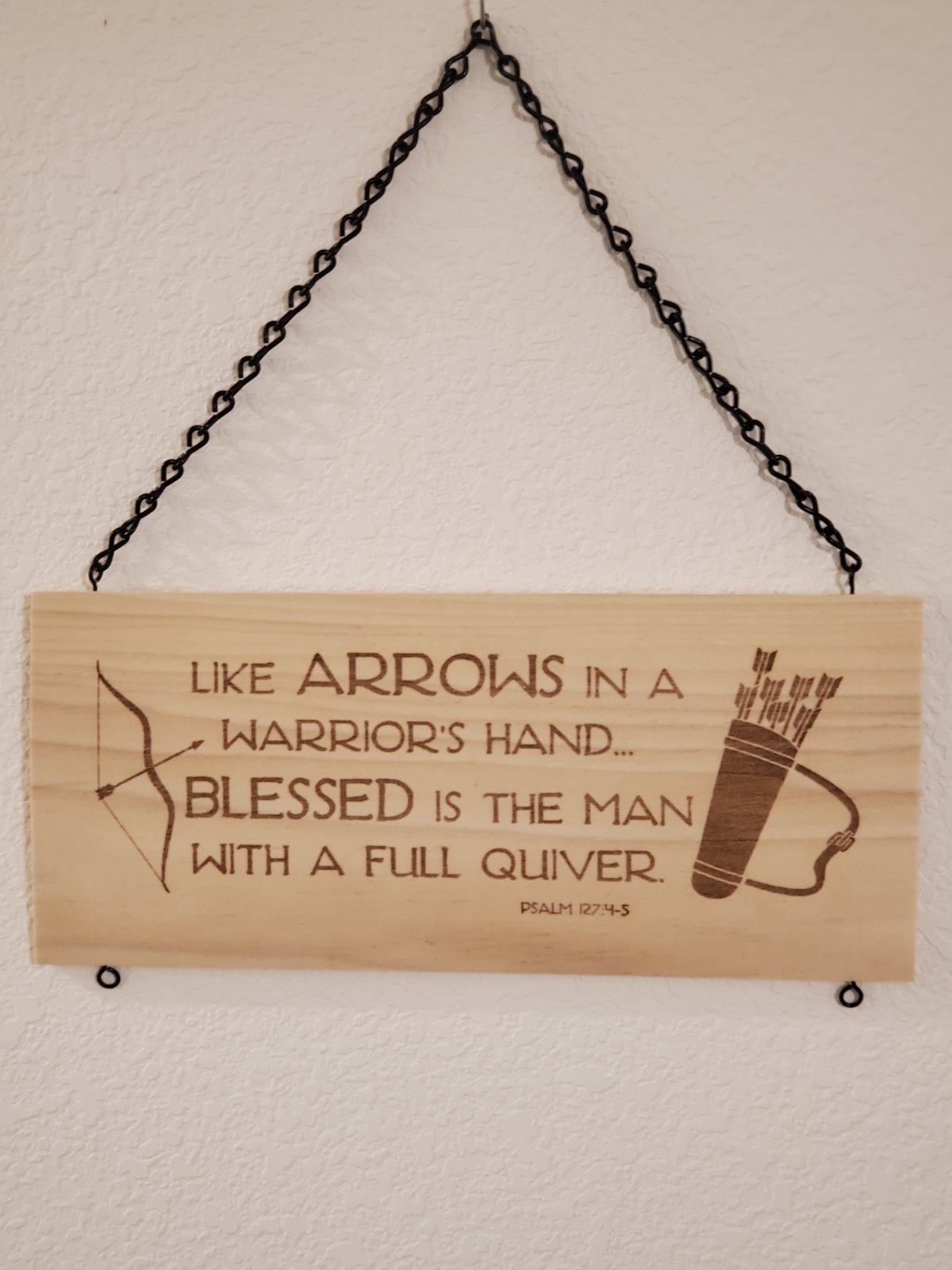 **Personalized Poplar Wood Wall Sign - "Like Arrows in a Warrior's Hand"**